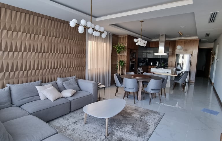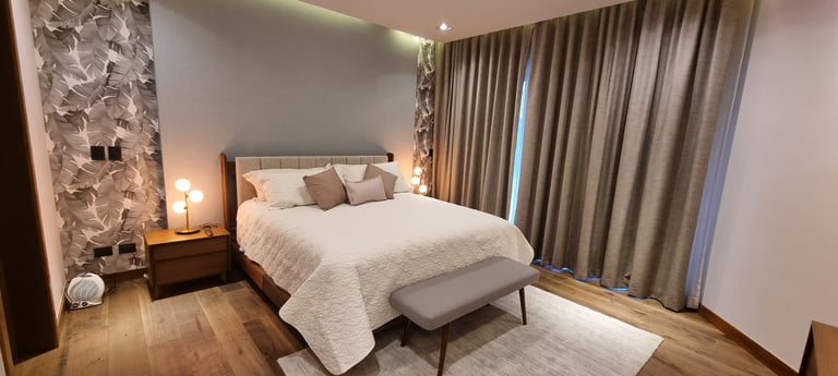 Casa Lo, is a heartfelt residential project developed in collaboration with architect Castellanos, who led the architectural design and construction. Conceived as a gift for our clients’ mother, the home was fully curated and move-in ready—complete with tableware, furnishings, and carefully selected accessories, allowing her to simply arrive with her personal belongings. The house is thoughtfully divided into two wings: a single-level, warm and contemporary space designed for the mother, and a more modern, bachelor-style studio for the younger brother. At its back, a welcoming pool and terrace creates the perfect setting for gathering the entire family, grandchildren included.