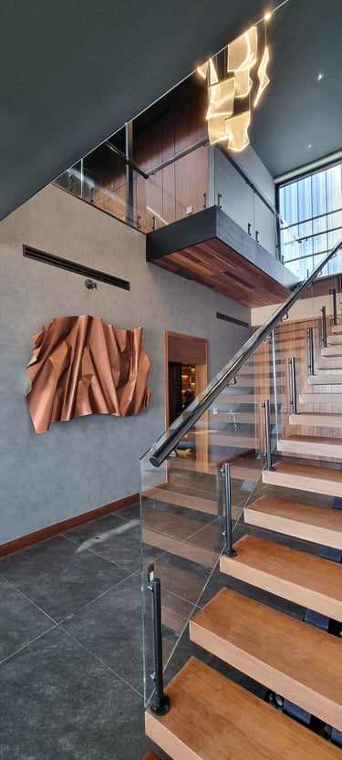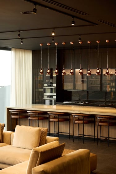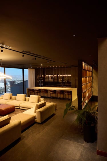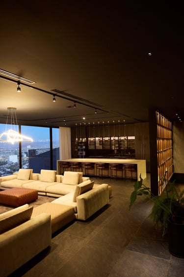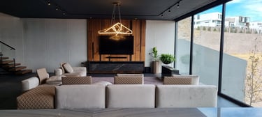 Located in Cumbres de Dominion, Chihuahua, Mx. This high end project was a teamwork, I was hired to do the interior design since the conception of the architectural project with Arq. Castellanos, so the materials would be real, and any piece of art could be considered since the beginning. Materials speaking, embracing the view of the city, open spaces with warm tones, minimalism that let the silence give you peace.