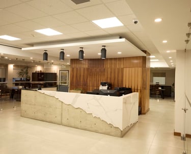 Clean-lined, smaller-scale furniture was carefully selected to open up the space, allowing it to breathe. The result is an office that feels more expansive, modern, and intentional—achieved not through major changes, but through a shift in how the space is experienced.
