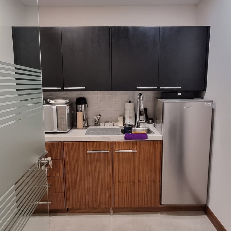 The answer became an exercise in perception and subtle transformation. The design focused on creating visual continuity—spaces that feel connected rather than confined. A disruptive reception bar in exposed concrete was introduced, elevated with a high-gloss finish to balance rawness with refinement. The existing wood partition was preserved for the privacy it provides, but reimagined through a new tone that feels lighter and more contemporary.