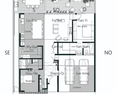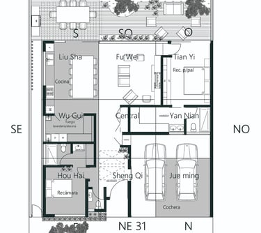 This is the foundation. When a space is conceived through the lens of Classical Feng Shui, the analysis reveals an underlying order—a spatial script that informs the plan, traces axes, and resolves alignments.