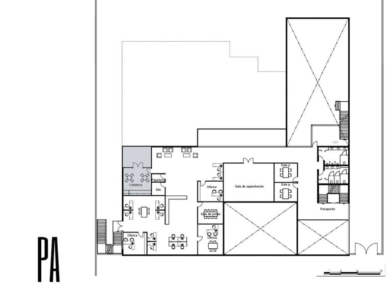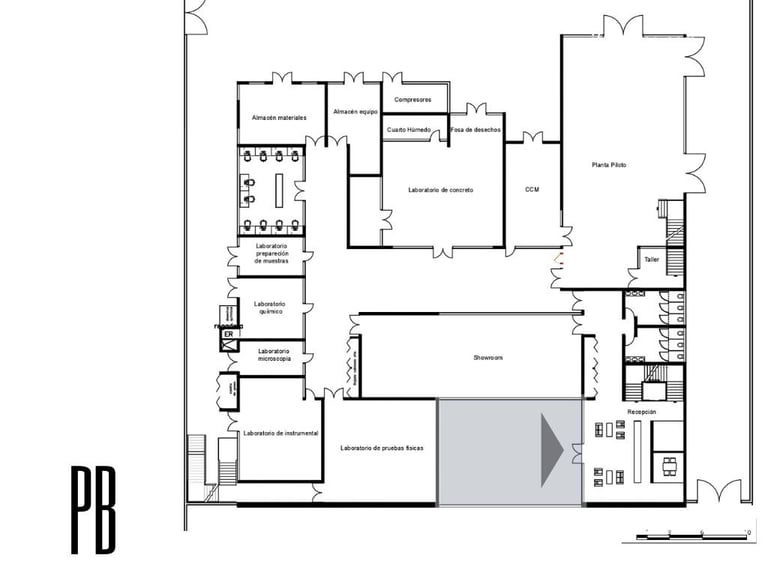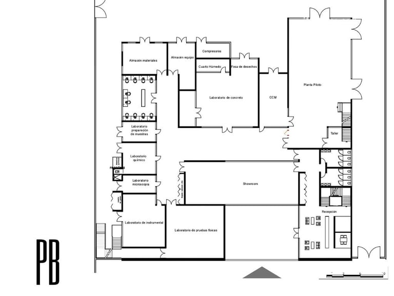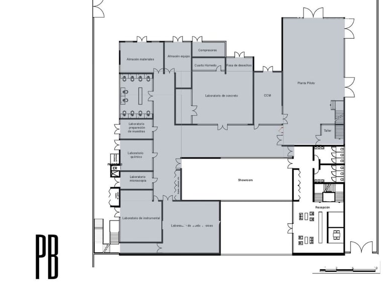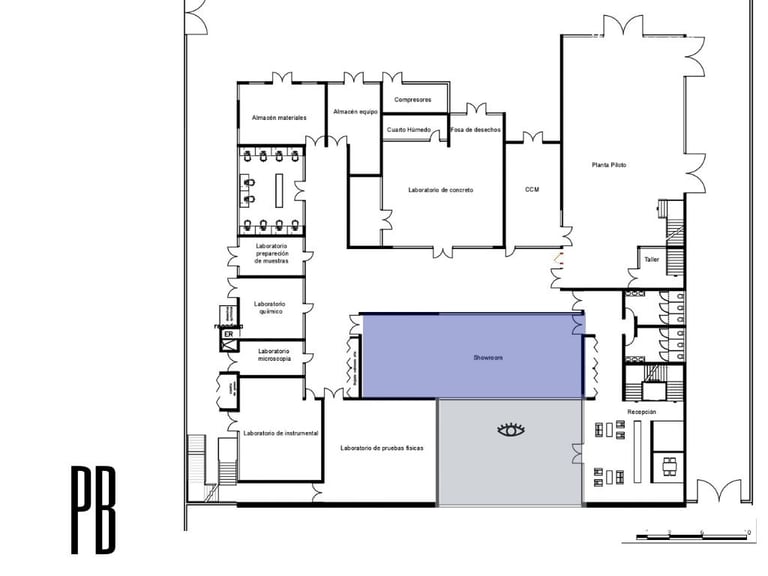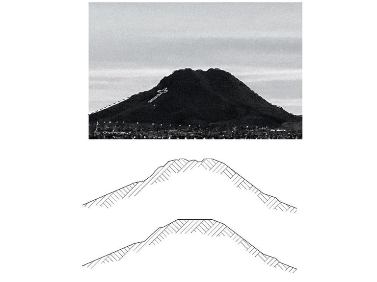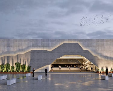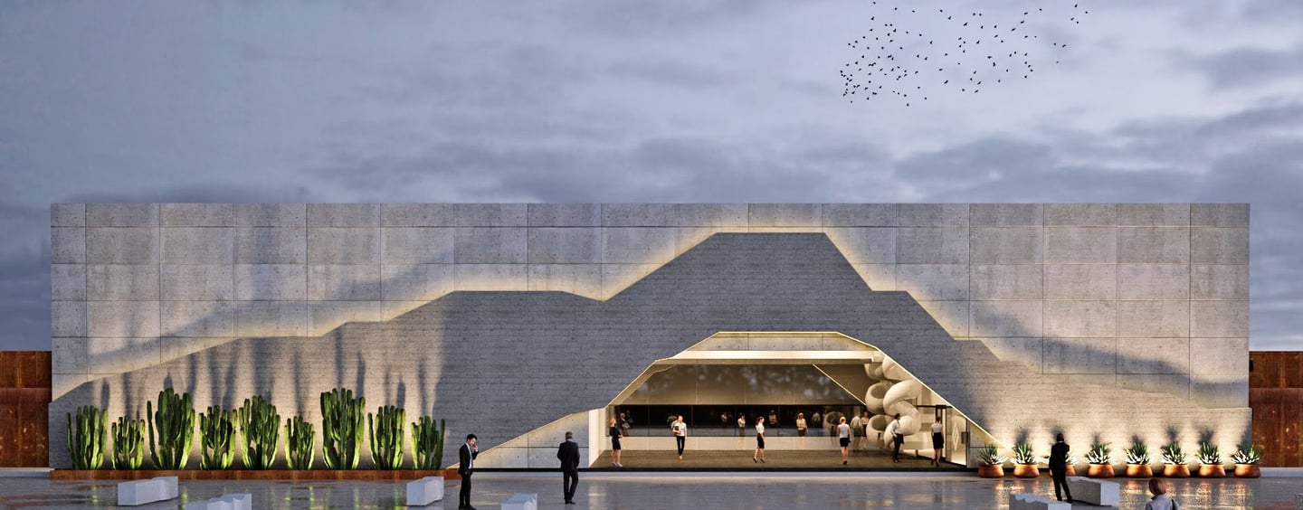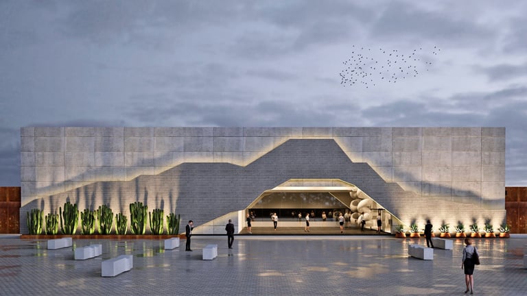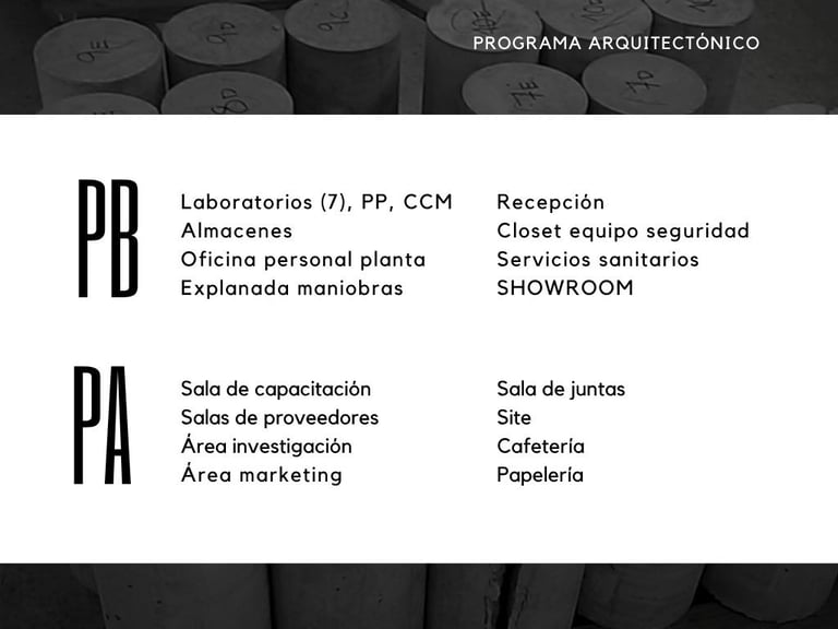 Set within an active industrial plant, surrounded by heavy machinery and sober constructions, the challenge was to create something that could both belong and stand out. The façade emerged as a direct response to its context and orientation—a more closed western face, layered with a superposition of materials produced by the company itself, each in different finishes. Its form was shaped through a deeper reading of the company’s impact on the identity and economy of Chihuahua. Conceived as a landmark, the silhouette draws inspiration from the presence of Cerro Grande—an unmistakable symbol of the city—and pays homage to the Sierra de Nombre de Dios, where the raw material that fuels the company originates.