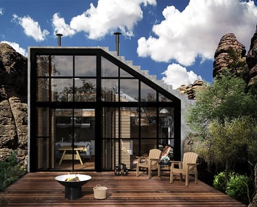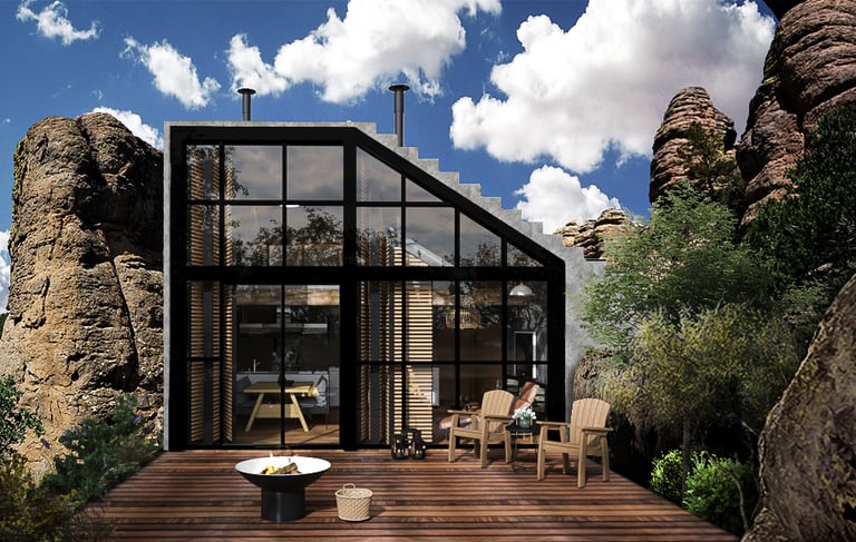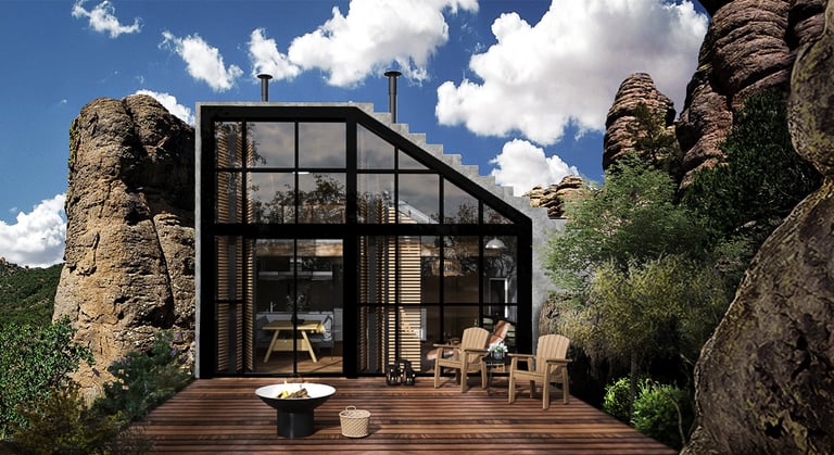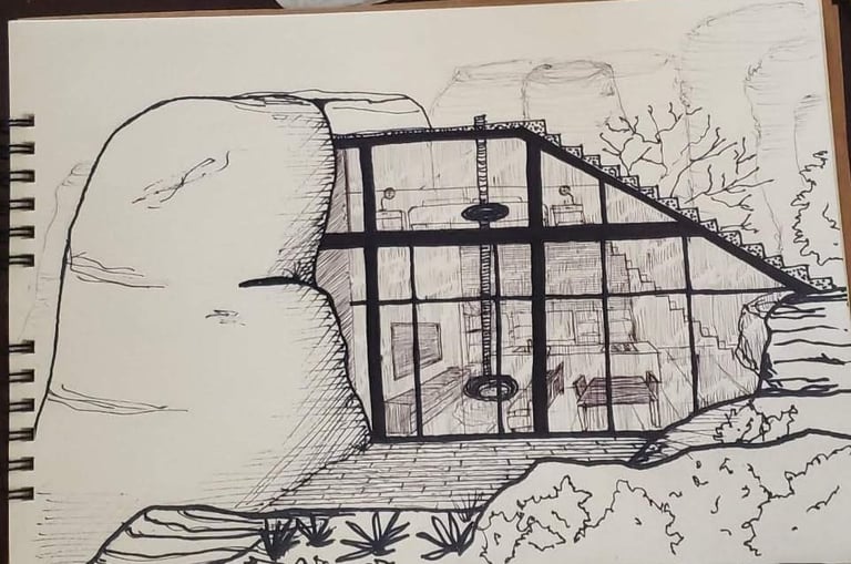The Slide at Mil Castillos began as a quiet, personal moment—walking the land, imagining what it could become. A quick sketch turned into a deeper exploration of the hillside, tracing its levels to find the exact point where the main window could open to the south and capture the most breathtaking view. From that instinctive beginning, a retreat emerged: simple in form, yet rich in intention. A place designed to hold stillness, where comfort meets raw nature, and where the silence of this stone-covered summit becomes part of the living experience.